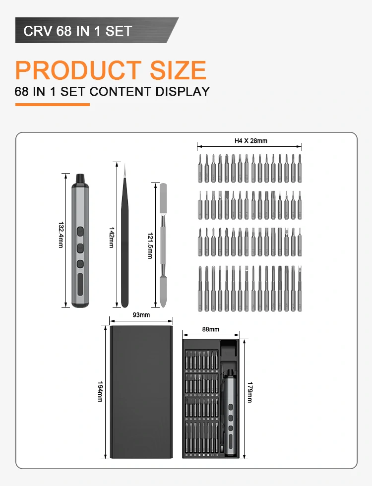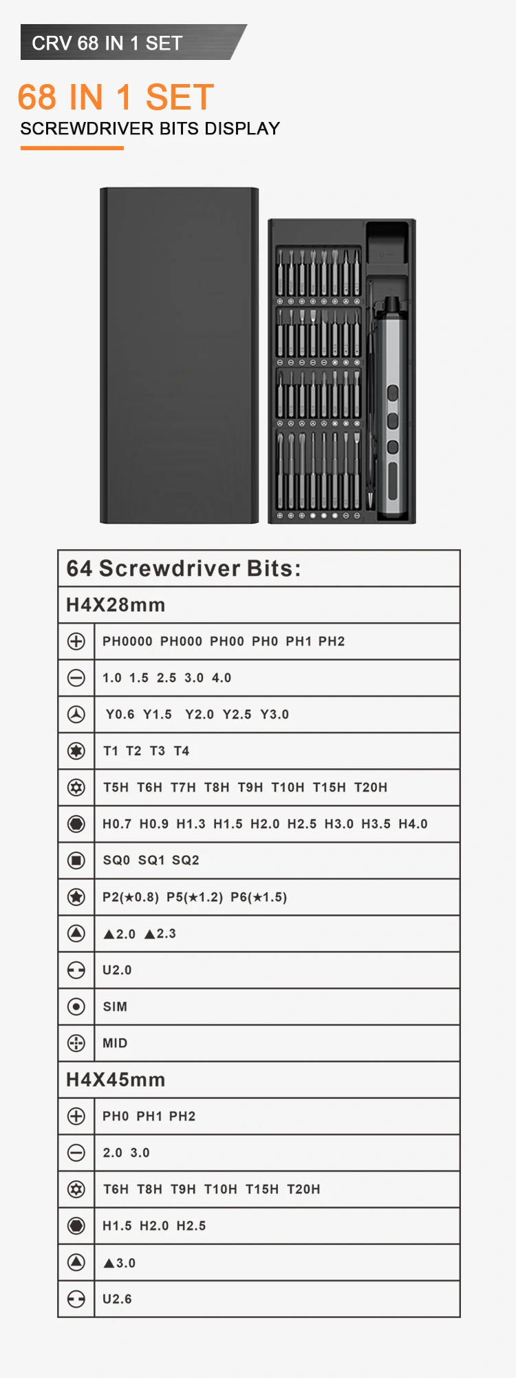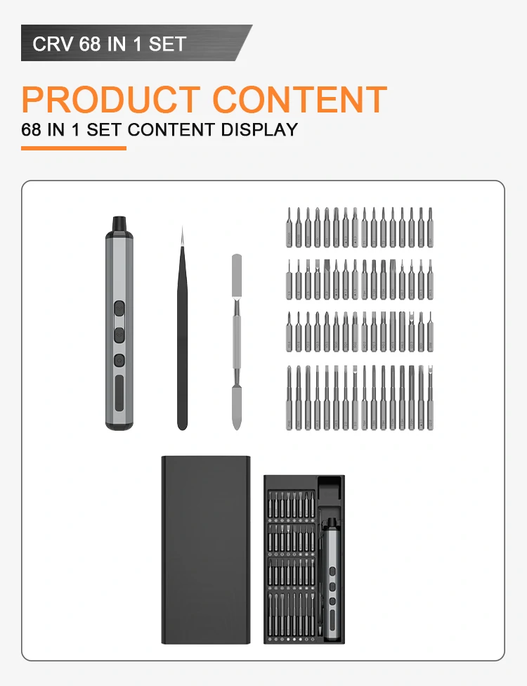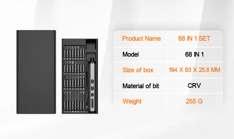 68-in-1: Comes with 68 different screwdriver bits to meet various DIY needs