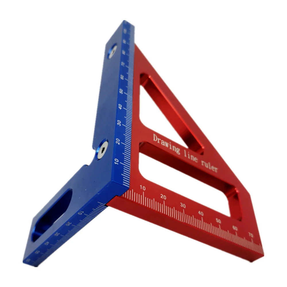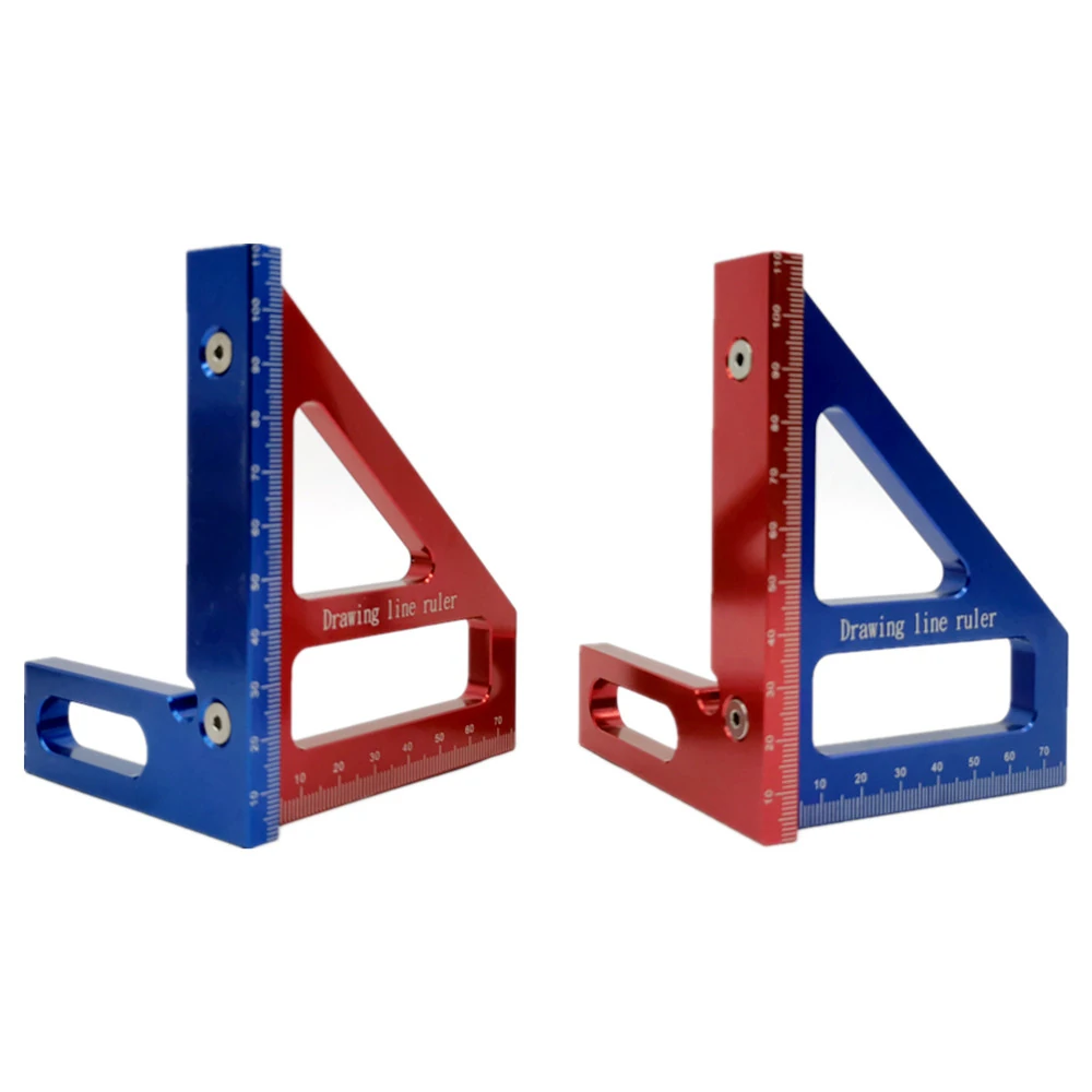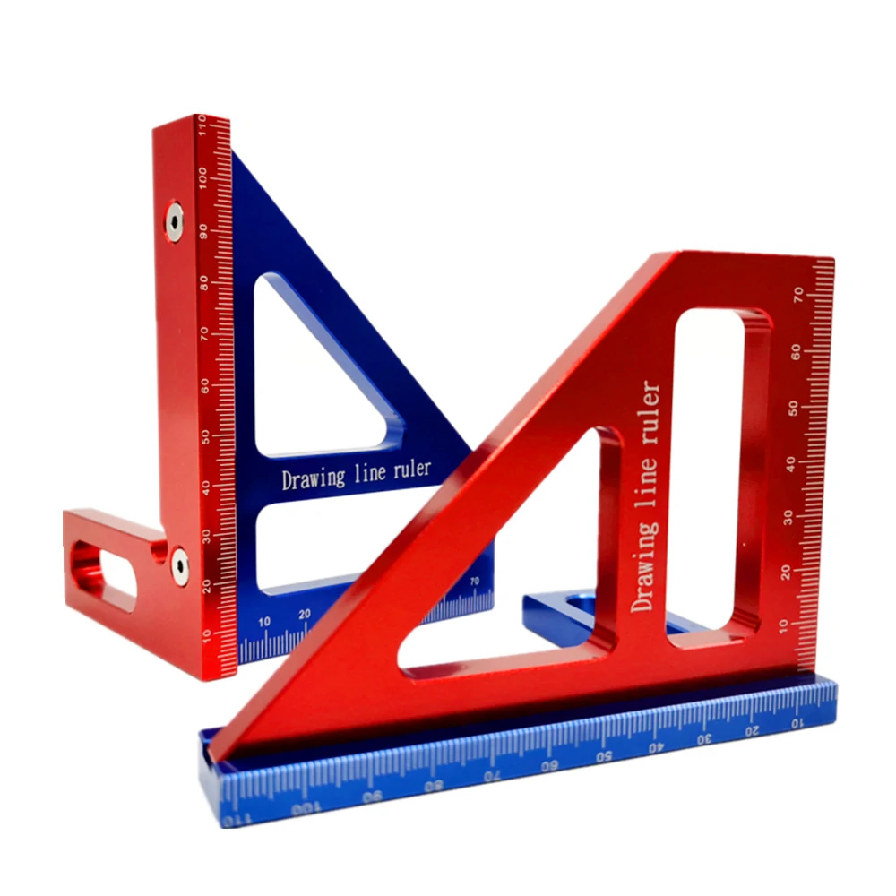 Aluminum Alloy 45/90 Degree Woodworking Square Protractor Miter Triangle Drawing Line Ruler Layout Height Gauge - Red