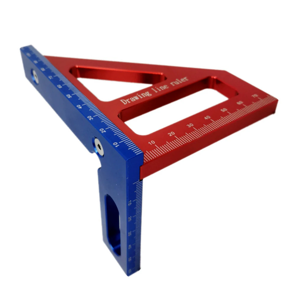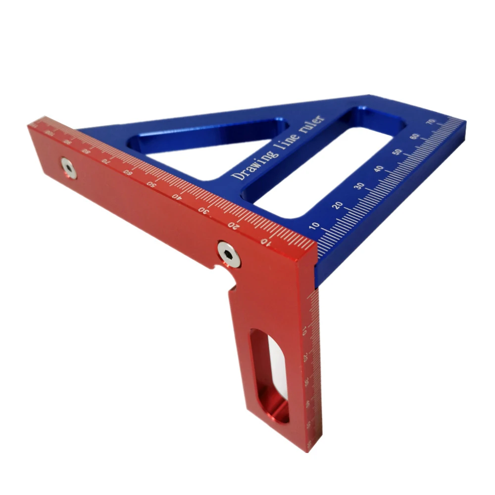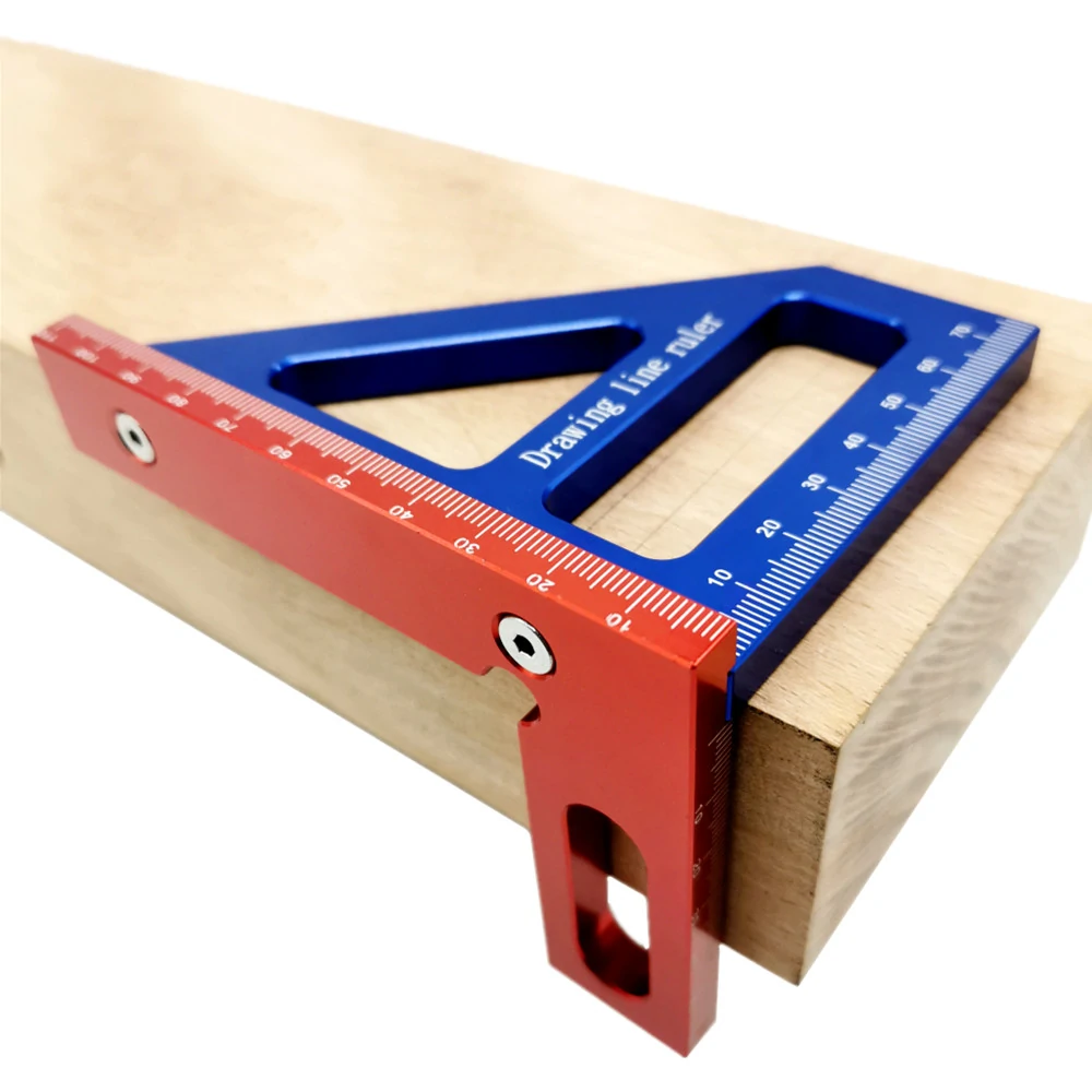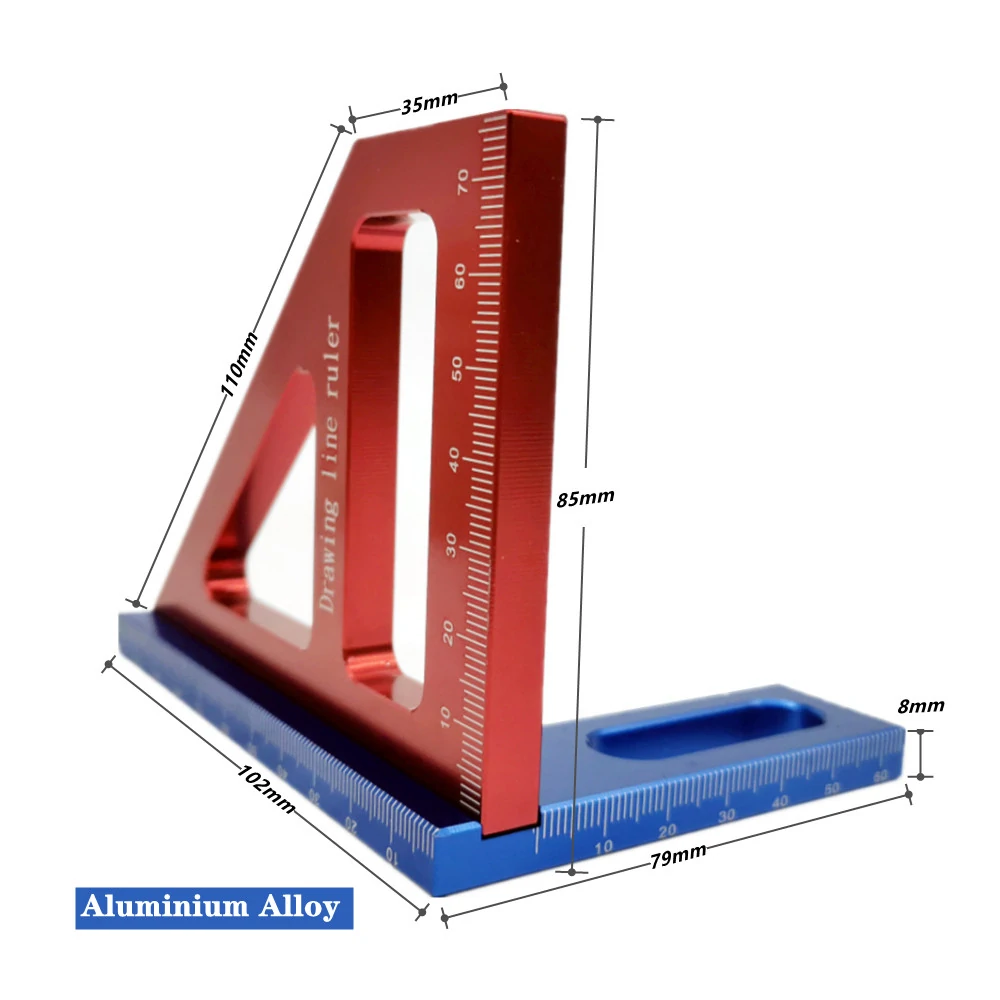 Aluminum Alloy 45/90 Degree Woodworking Square Protractor Miter Triangle Drawing Line Ruler Layout Height Gauge - Red