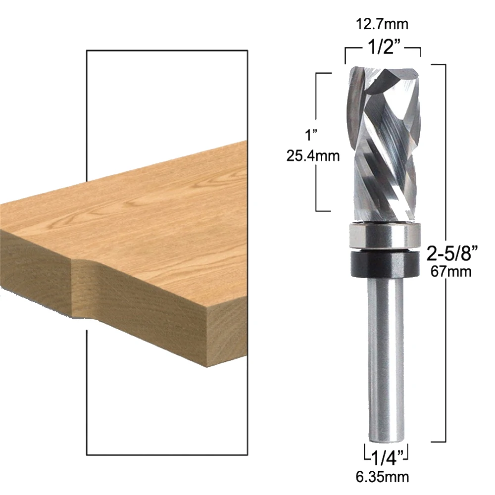 12.7*25.4*67MM Carbide Lower Bearing Spiral Trimming CNC Router Bit End Mill 1/4" 6.35mm Shank for Woodworking