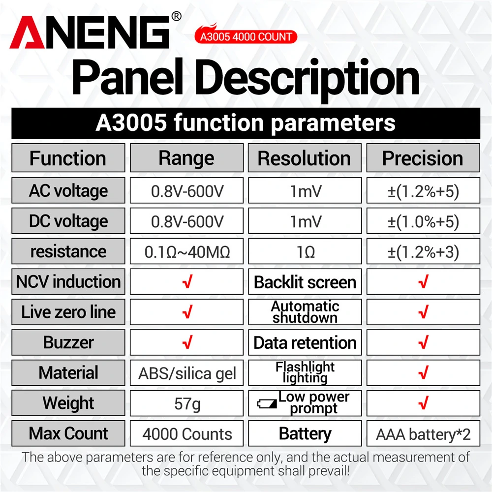 ANENG A3005 Digital Multimeter Pen Type 4000 Counts Professional Meter Non-Contact Auto AC/DC Voltage Ohm Diode Tester For Tool