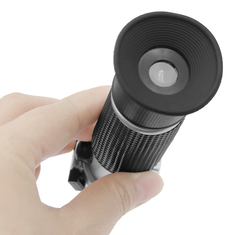 3. Clean the prism with soft cloth, then place 2-3 drops of the liquid sample to be tested on the prism.then close the cover plate and make sure the water spread aross the prism without any air bubbles or dry spots. wait for about 30 seconds to let the reading to stabilize. Align the prism assembly with the light source. look into eyepiece and you can get the reading.