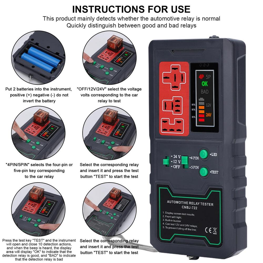 1、[universal application] automotive relay tester is suitable for 12/24v voltage and detectable 4pin/5pin automotive relay, make your life more convenient.
