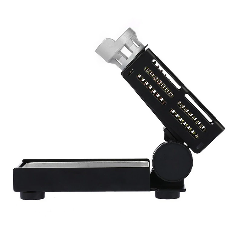 ST-90 Professional Soldering Iron Stand Holder Station Adjustable Elevation Angle Cleaning Sponge This soldering iron with a rotary knob whose elevation angle can be adjusted. Come with a sponge for cleaning soldering iron tip. Features: