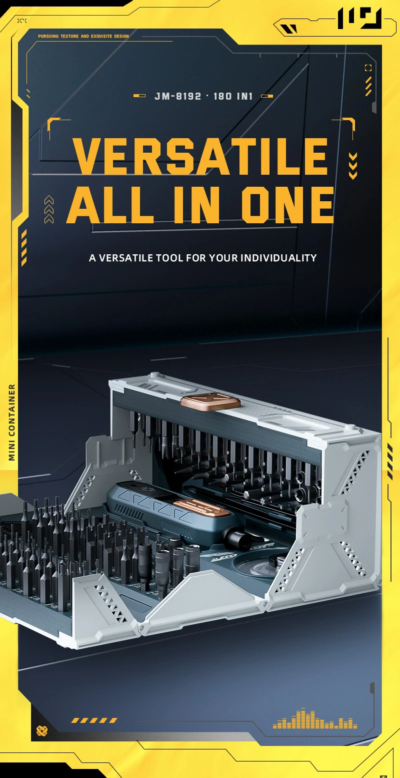JM-8192 Multi-Functional 180-in-1 Precision Screwdriver Tool Set Chrome Vanadium Bits Stripped Screw Extractors Mobile Phone Repair DIY Tools Home Improvement