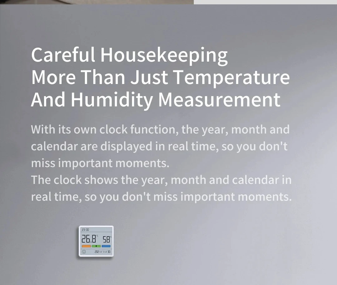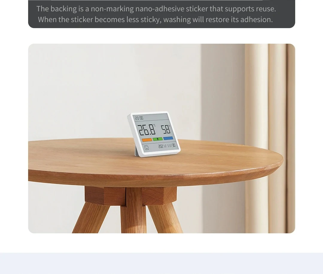 Advanced Climate Indicators: The Xiaomi DUKA Atuman Thermohygrometer provides automatic environmental climate prompts, indicating comfort, dry, and humid conditions based on temperature and humidity levels.