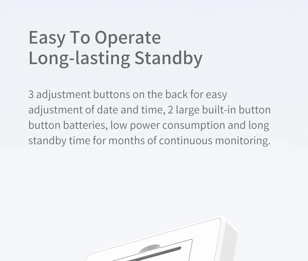 Compact and Lightweight: Weighing just 60g and measuring 77x68x10mm, the device is easy to place or carry around the house.